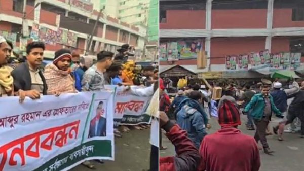 কারওয়ান বাজারে চাঁদাবাজির বিরুদ্ধে ব্যবসায়ীদের মানববন্ধনে হামলা, ধাওয়া-পাল্টা ধাওয়া