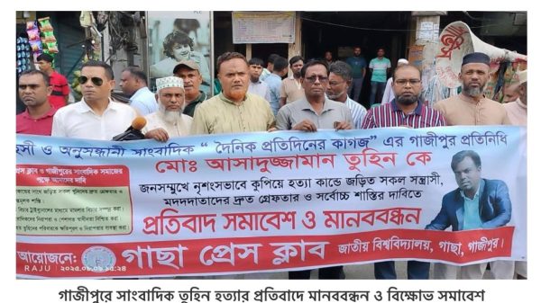 গাজীপুরে সাংবাদিক তুহিন হত্যার প্রতিবাদে মানববন্ধন ও বিক্ষোভ সমাবেশ