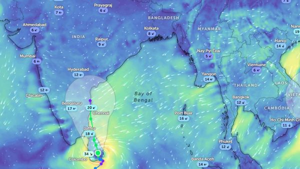 দক্ষিণপশ্চিম বঙ্গোপসাগর ও তৎসংলগ্ন শ্রীলংকা উপকূলে অবস্থানরত ঘূর্ণিঝড় “ডিটওয়াহ” উত্তর-উত্তরপশ্চিম দিকে অগ্রসর হয়ে শ্রীলংকা উপকূল ও তৎসংলগ্ন দক্ষিণপশ্চিম বঙ্গোপসাগর এলাকায় অবস্থান করছে। শুক্রবার (২৮ নভেম্বর) সকালে আবহাওয়া অধিদপ্তরের বিশেষ বিজ্ঞপ্তিতে