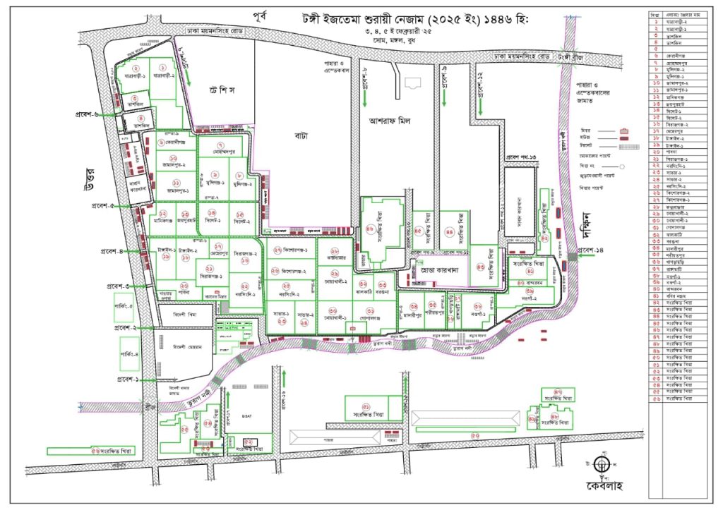 ডিএমপির উপকমিশনার [মিডিয়া] তালেবুর রহমান স্বাক্ষরিত এক বিজ্ঞপিÍতে এ নির্দেশনা দেওয়া হয়। নির্দেশনায় বলা হয়, আখেরি মোনাজাতের দিন ভোররাত ৪টা থেকে আন্তজেলা বাস, ট্রাক, কাভার্ড ভ্যান ও অন্য ভারী যানবাহনগুলো আবদুল্লাহপুর ধউর ব্রিজ মোড় পরিহার করে মহাখালী-বিজয় স্বরণি- গাবতলী হয়ে চলাচল করবে। অনুরুপভাবে নবীনগর, বাইপাইল ও আশুলিয়া হয়ে উত্তরবঙ্গ থেকে আগত যানবাহনগুলো কামারপাড়া-আবদুল্লাহপুর ক্রসিং পরিহার করে সাভার, গাবতলী দিয়ে চলাচল করবে অথবা ধউর ব্রিজ ক্রসিং হয়ে মিরপুর বেড়িবাধ দিয়ে চলাচর করবে। ঢাকা থেকে এয়ারপোর্ট রোড দিয়ে আগত যানবাহনগুলো কুড়িল ফ্লাইওভারের ওপর দিয়ে প্রগতি স্বরণি হয়ে অথবা বিশ^রোড ক্রসিং [নিকুজ্ঞ-১ [কেচি গেট] দিয়ে ইউটার্ন করবে। ভোর ৪টা থেকে ৩০০ফিট দিয়ে আগত যানবাহনগুলো কুড়িল ফ্লাইওভার লুপ-৪ [কাকলী-মহাখালীগামী] ব্যবহার করবে। কোনোভাবেই বিমানবন্দরের সড়ক ব্যবহার করা যাবে না। ঢাকা এলিভেটেড এক্সপ্রেসওয়ের কাওলা-এয়ারপোর্টগামী এক্রিট পরিহার করার জন্য অনুরোধ করা হলো। নির্দেশনায় আরও বলা হয়, উত্তরার বাসিন্দা, বিমানযাত্রী, বিমান অপারেশনাল যানবাহন ও বিমান ক্রু বহনকারী যানবাহন, ফায়ার সার্ভিসের গাড়ি, আইনশৃঙ্খলা রক্ষাকারী বাহিনীর গাড়ী ও অ্যাম্বুলেন্স ছাড়া সব ধরনের যানবাহনের চালকের বিমানবন্দর সড়ক পরিহার করে বিকল্প হিসাবে মহাখালী- বিজয় স্বরণি হয়ে মিরপুর-গাবতলী সড়ক ব্যবহার করবেন। ঢাকা মহানগর থেকে যেসব মুসল্লি হেটে বিশ্ব ইজতেমাস্থলে যাবেন, তারা তুরাগ নদের ওপর নির্মিত পলটুন ব্রিজ অথবা কামাপাড়া ব্রিজ দিয়ে টঙ্গী ইজতেমা ময়দানে যাতায়াত করবেন। বিদেশগামী যাত্রীদের বিমানবন্দরে আনা-নেওয়ার জন্য আখেরী মোনাজাতের দিন পদ্মা ইউলুপ এবং কুড়াতলী লুপ-২ এবং নিকুজ্ঞ-১ গেট থেকে ট্রাফিক-উত্তরা বিভাগের ব্যবস্থাপনায় যাত্রীদের জন্য পরিবহন সেবা দেওয়া হবে। নির্ধারিত পার্কিং স্থানে মুসল্লিবাহী যানবাহন পার্কিংয়ের সময় অবশ্যই গাড়ির চালক বা হেলপার গাড়িতে অবস্থান করবেন এবং বহনকারী যাত্রীগন ও চালক একে অপরের মোবাইল নম্বর নিয়ে রাখবেন, যাতে বিশেষ প্রয়োজনে তাৎক্ষণিকভাবে পারস্পরিক যোগাযোগ করা যায়। এ ছাড়া মুসল্লিবাহী প্রতিটি যানবাহনের দৃশ্যমান স্থানে চালকের নাম এবং মোবাইল নম্বর দৃশ্যমান থাকতে হবে। ঢাকা-ময়মনসিংহ মহাসড়কে ফ্লাইওভারের নিচে আবদুল্লাপুর বেইলি ব্রিজ ভেঙ্গে যাওয়ার কারণে সব যানবাহন চালকদের আজমপুর থেকে ফ্লাইওভার ব্যবহার করার জন্য অনুরোধ করা হলো। সড়ক দূর্ঘটনা এড়াতে জনসাধারনকে হেটে ফ্লাইওভার দিয়ে পারাপার না হওয়ার জন্য অনুরোধ করা হলো। খিলক্ষেত থেকে আবদুল্লাহপুর হয়ে ধউর ব্রিজ পর্যন্ত রাস্তায